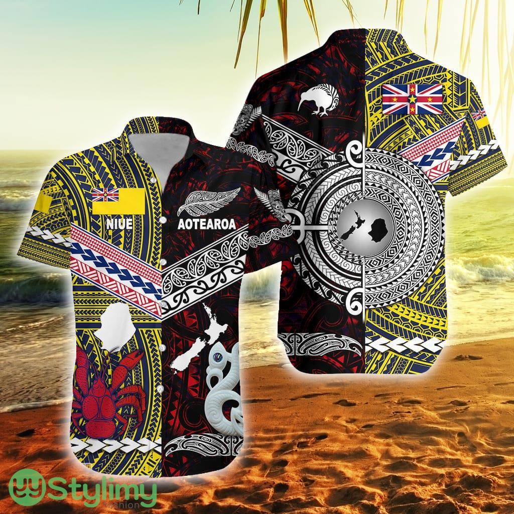 New Zealand Maori Aotearoa And Niue Together Red Niue Button Down Hawaiian Shirt Trending Summer Product Photo 1