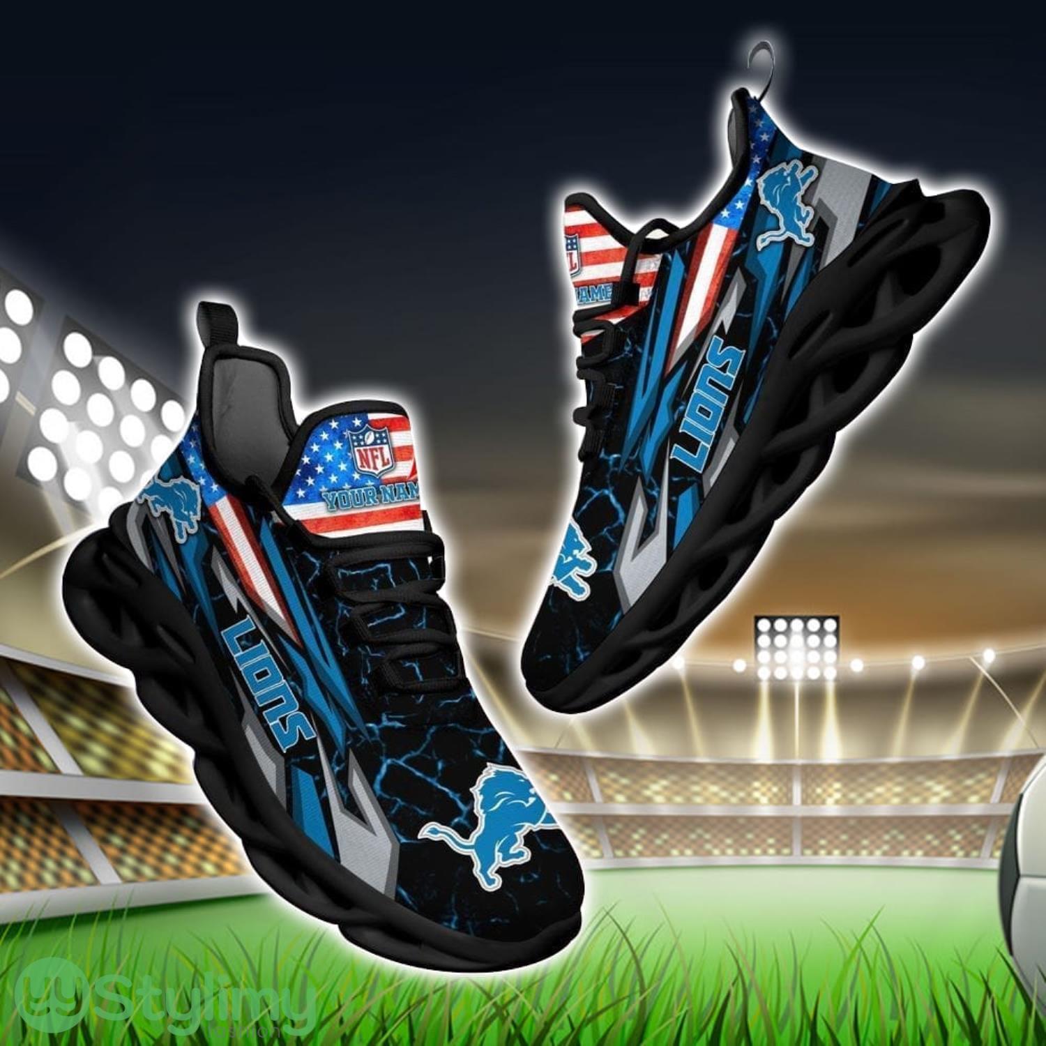 NFL Detroit Lions Logo And Flag Custom Name Max Soul Shoes Gift For Fan Product Photo 1