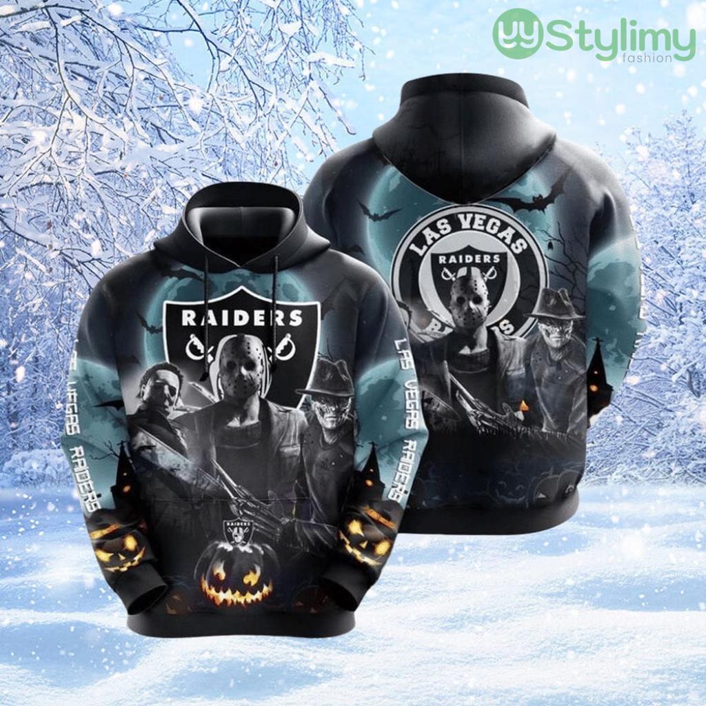 Perfect design for holiday. Get yours this shirt or this is a cute item for your daddy, gift for your mom, and gift for friends on any occasion. buy a cute NFL Las Vegas Raiders All Over Print 3D Hoodie All Over Print Halloween Horrored Gift For Football Fans now.