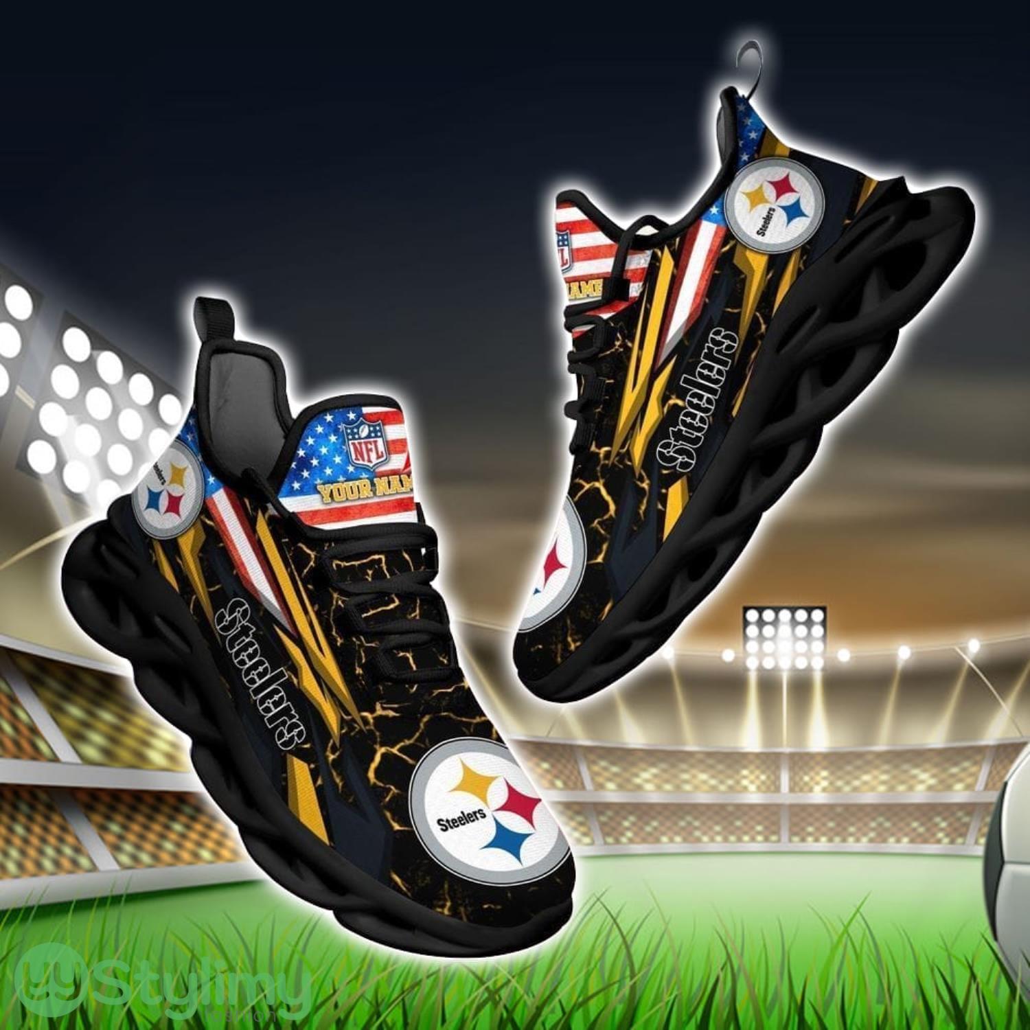 NFL Pittsburgh Steelers Logo And Flag Custom Name Max Soul Shoes Gift For Fan Product Photo 1