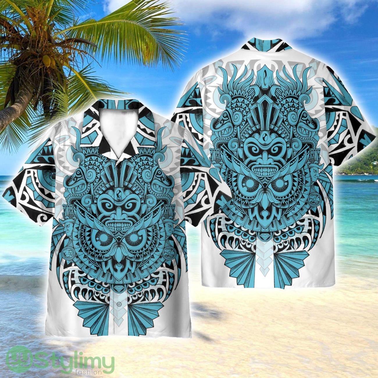 Nordic Viking Owl Tattoo Blue Color 3D Hawaiian Shirt All Over Printed Details: