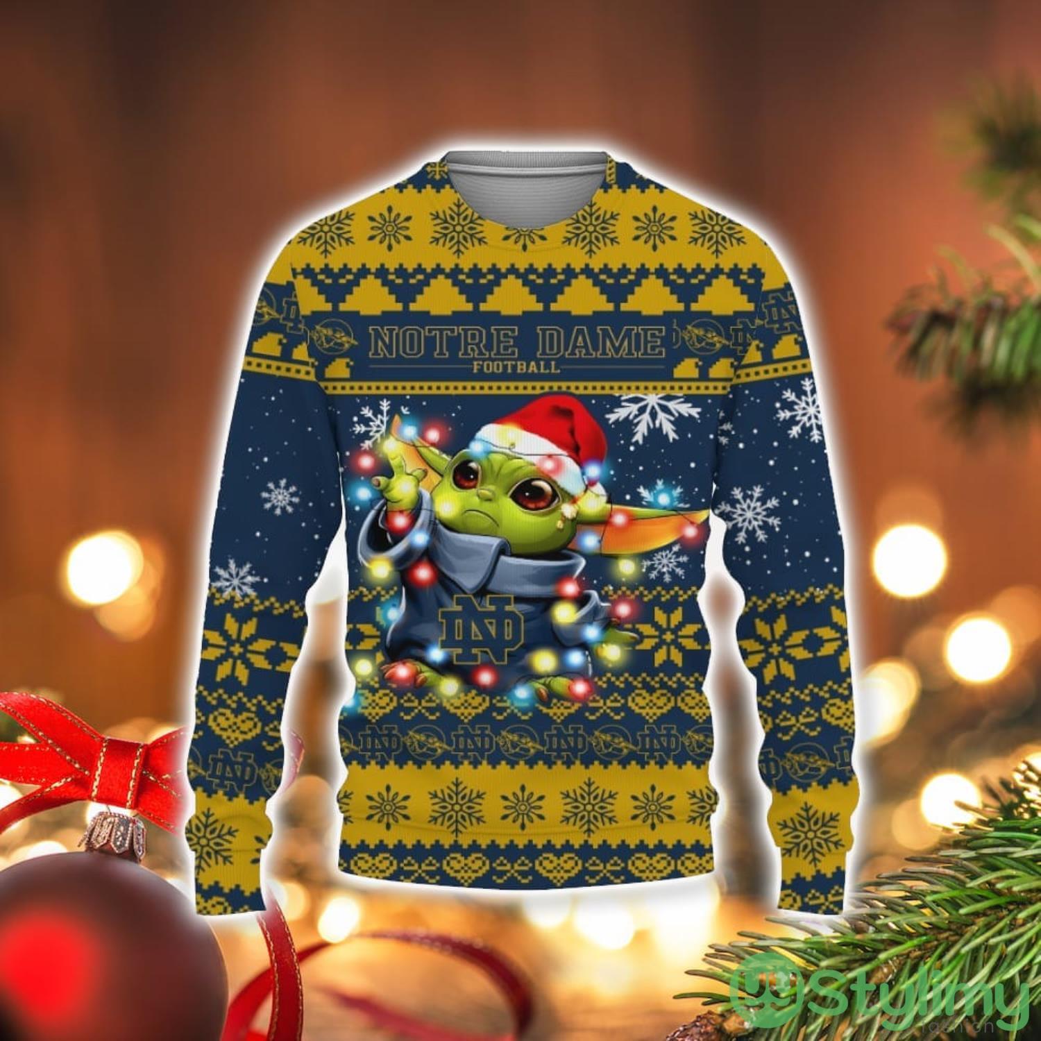Notre Dame Fighting Irish Baby Yoda Star Wars Sports Football American Ugly Christmas Sweater Product Photo 1