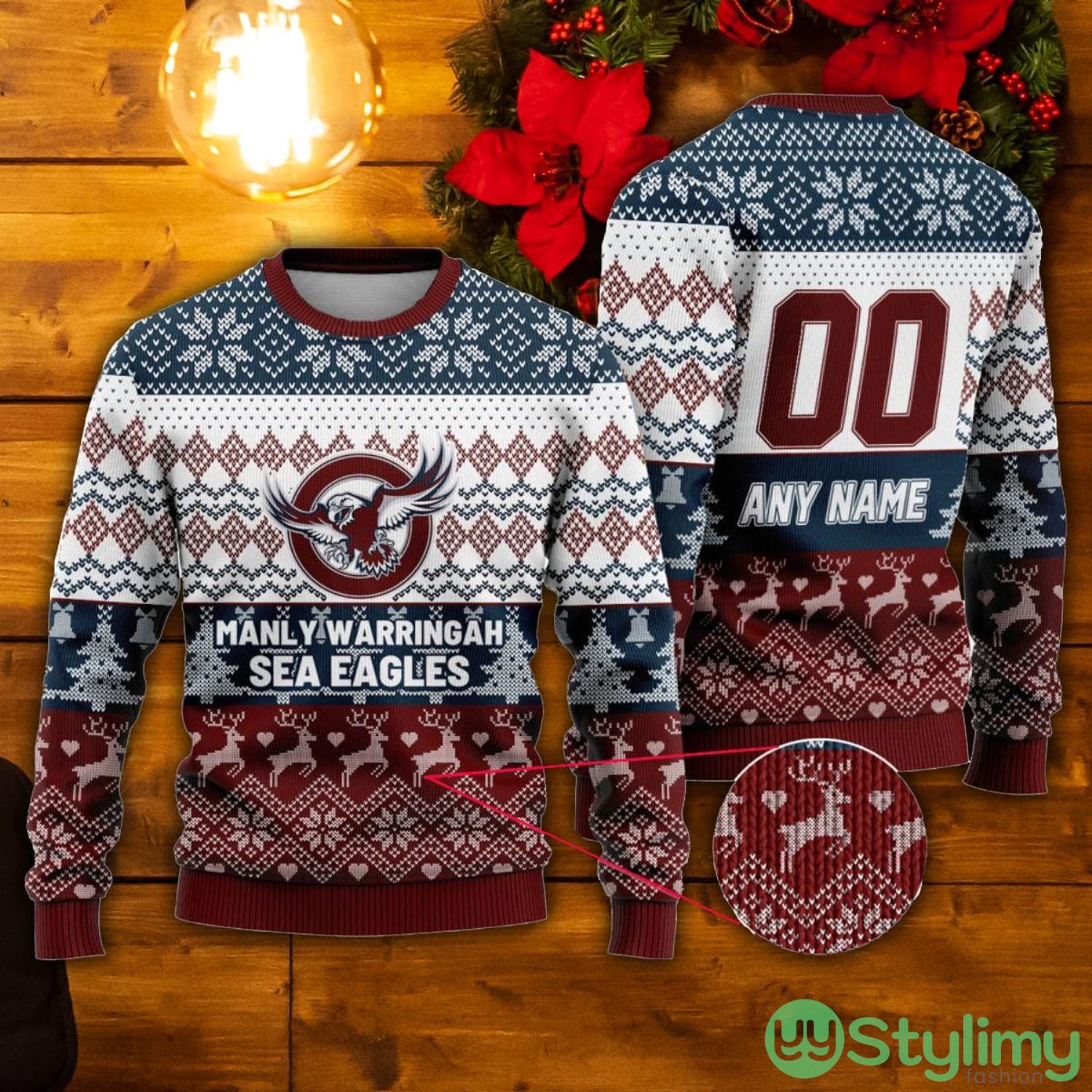 NRL Manly Warringah Sea Eagles Custom Name & Number Ugly Christmas Sweater Informations: