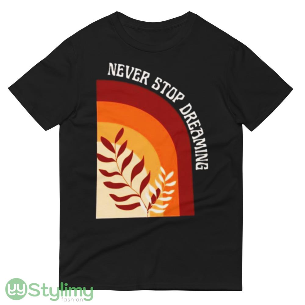 Looking for a unique and inspiring piece of clothing that will make you stand out from the crowd? Look no further than our Orange Illustration Never Stop Dreaming Print T Shirts!