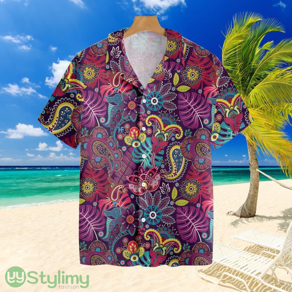 Paisley Tropical Leaves Hippie Hawaiian Shirt For Men And Women Details: