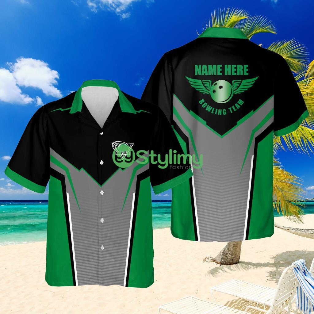 Personalized Bowling Team Green Black Hawaiian Shirt Details: