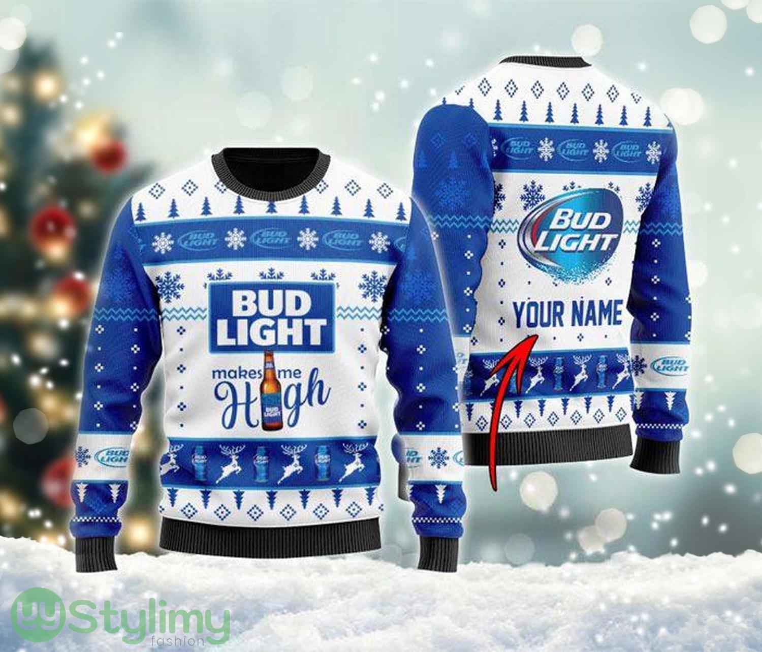 Personalized Name Bud Light Makes Me High Ugly Christmas Sweater Cute Christmas Gift For Family Product Photo 1