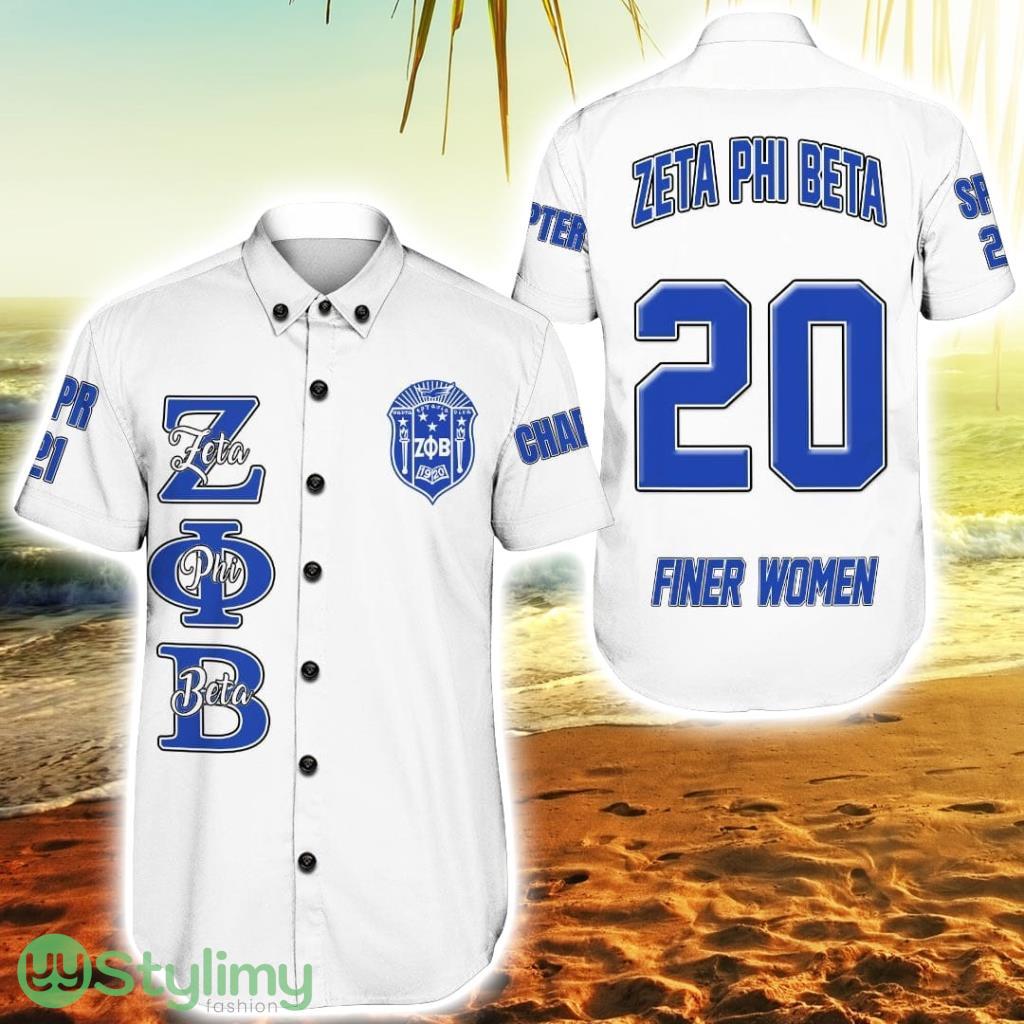 Featuring the iconic Zeta Phi Beta logo, this shirt embodies the spirit of sisterhood and brings a touch of Greek pride to your wardrobe. The crisp white fabric serves as the perfect canvas for the vibrant Hawaiian-inspired print, creating a captivating fusion of tradition and trendiness.
