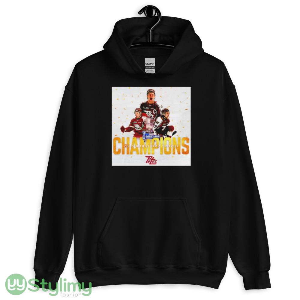 Crafted from high-quality materials, this shirt is soft to the touch and designed to keep you comfortable all day long. The bold graphics on the front proudly proclaim the Petes as champions, with the iconic Bobby Orr Trophy prominently featured. And with a classic design that will look great whether you’re heading to the rink or out for a night on the town, this shirt is sure to be a hit with fans of all ages.