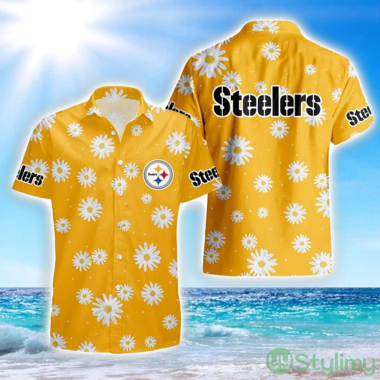 Embrace the vibrant fusion of tropical paradise and football fandom with the Pittsburgh Steelers Daisy Flower All Over Print Hawaiian Shirt. Order yours today and let your team pride bloom in full bloom!