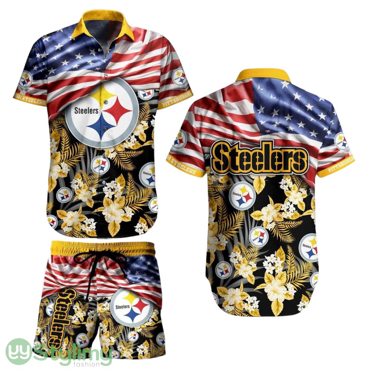 Pittsburgh Steelers NFL Aloha 3D Hawaiian Shirt And Short Summer Tropical Pattern US Flag Best Gift For Sports Enthusiast Details: