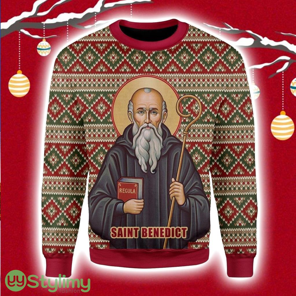 Saint Benedict Christmas Ugly Sweater 3D Product Photo 1