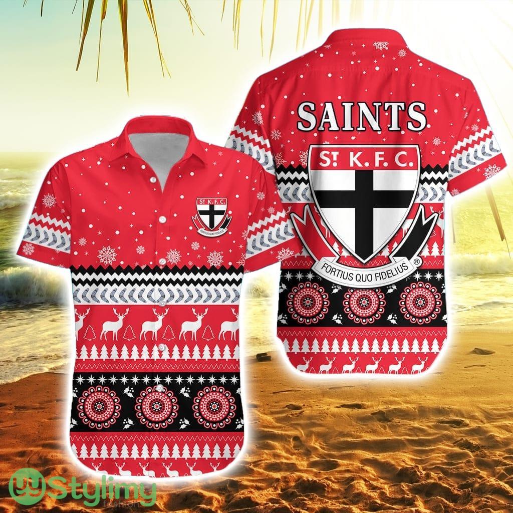 Saints Christmas Striped Hawaiian Shirt Indigenous St Kilda Football Details: