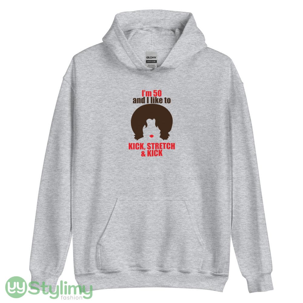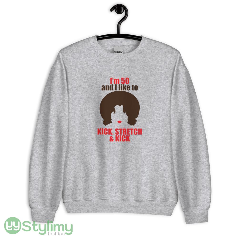 Sally O Malley SNL T shirt I’m 50 and I like to Kick stretch & kick shirt Details