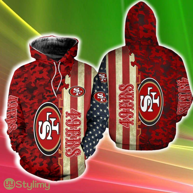 Crafted with meticulous attention to detail, the hoodie features a captivating 3D design that showcases the iconic San Francisco 49ers logo, beautifully intertwined with the American flag. The unique combination of these powerful symbols not only represents your unwavering support for your favorite team but also showcases your patriotism.