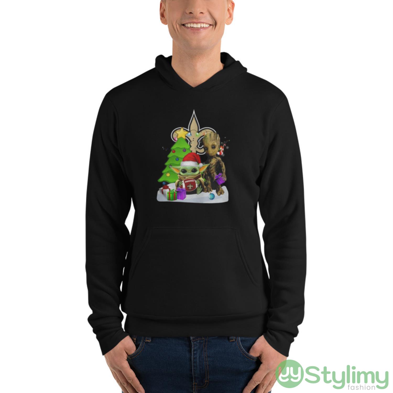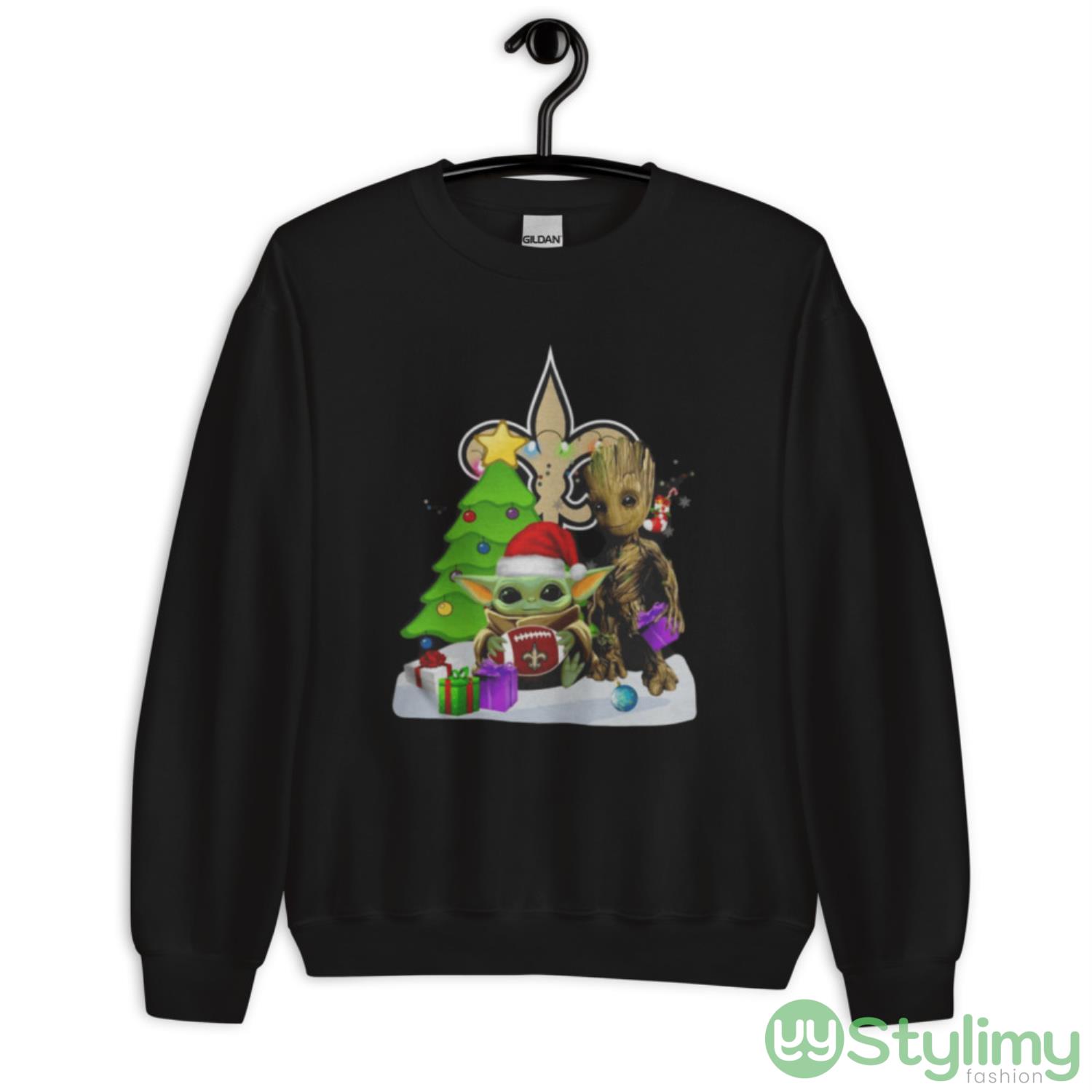 Santa Bigfoot And Baby Yoda Hug New Orleans Saints Snow Christmas Tree Shirt – Unisex Crewneck Sweatshirt