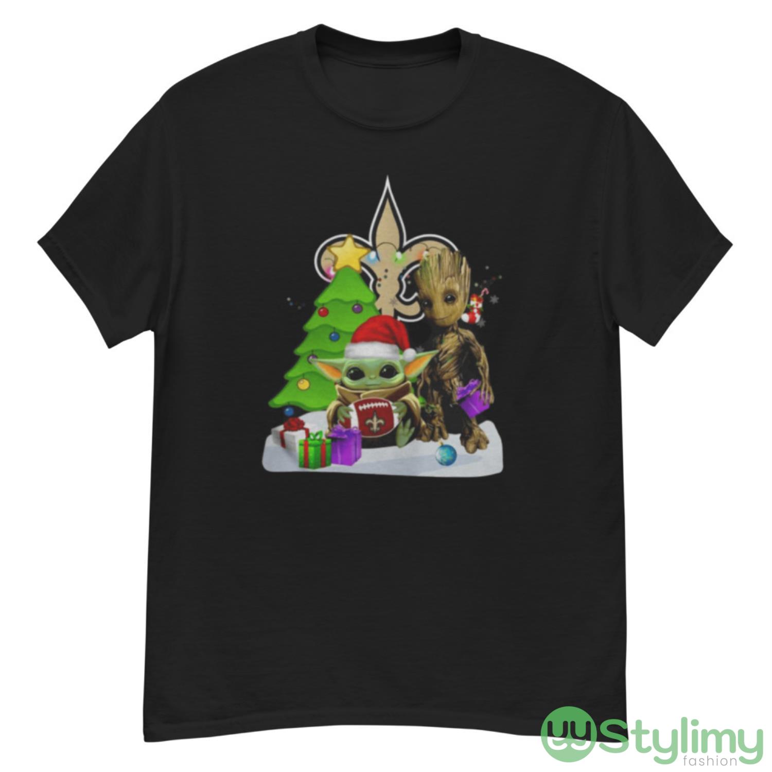 Santa Bigfoot And Baby Yoda Hug New Orleans Saints Snow Christmas Tree Shirt – G500 Men’s Classic T-Shirt