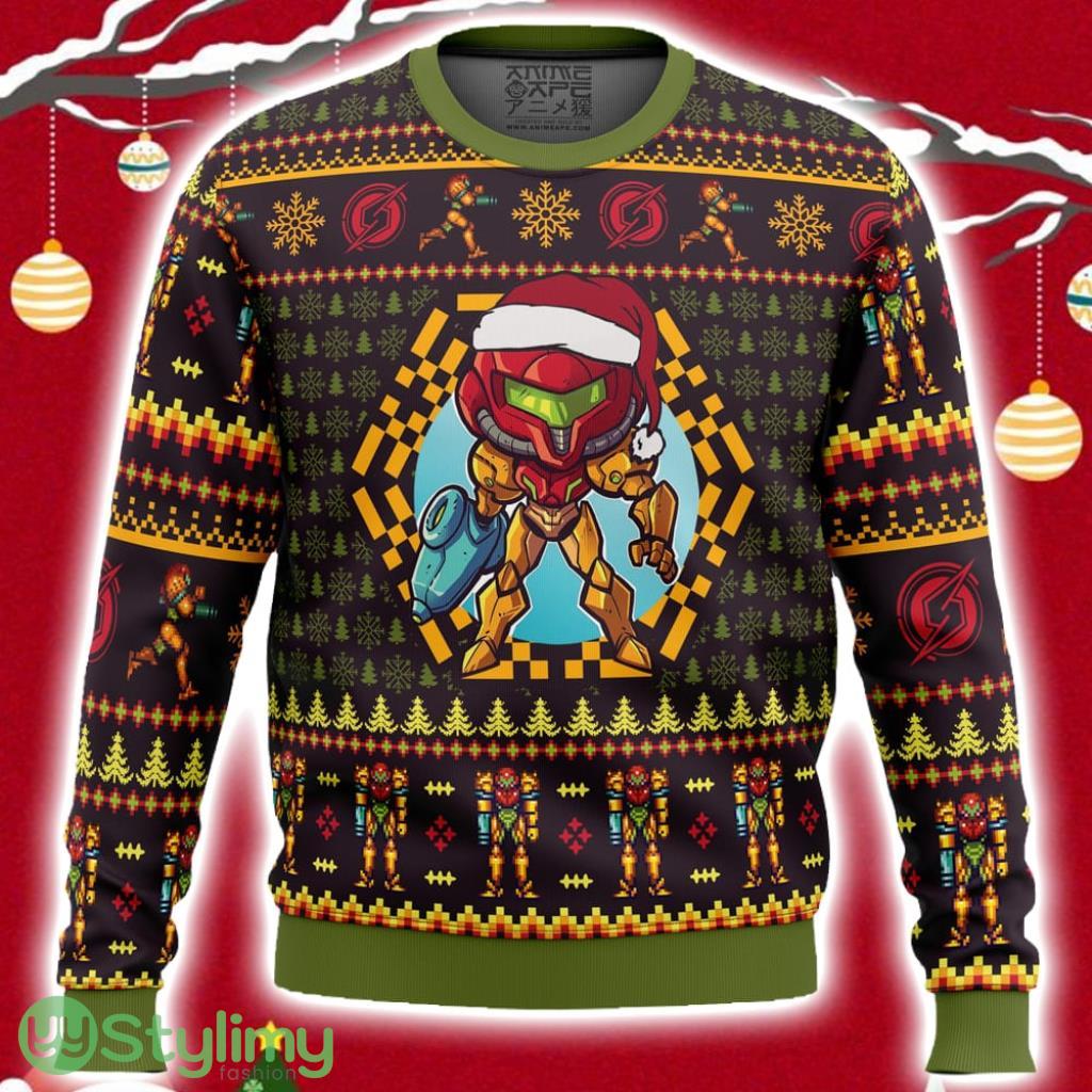 Get ready to sleigh in style this holiday season with our Santa Samus Aran Metroid Ugly Christmas Sweater 3D! This unique and eye-catching sweater combines the festive cheer of Christmas with the iconic gaming character, Samus Aran from the Metroid series.