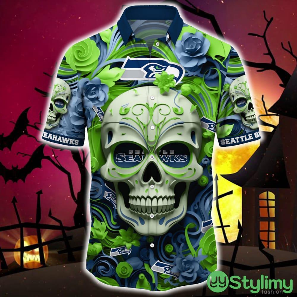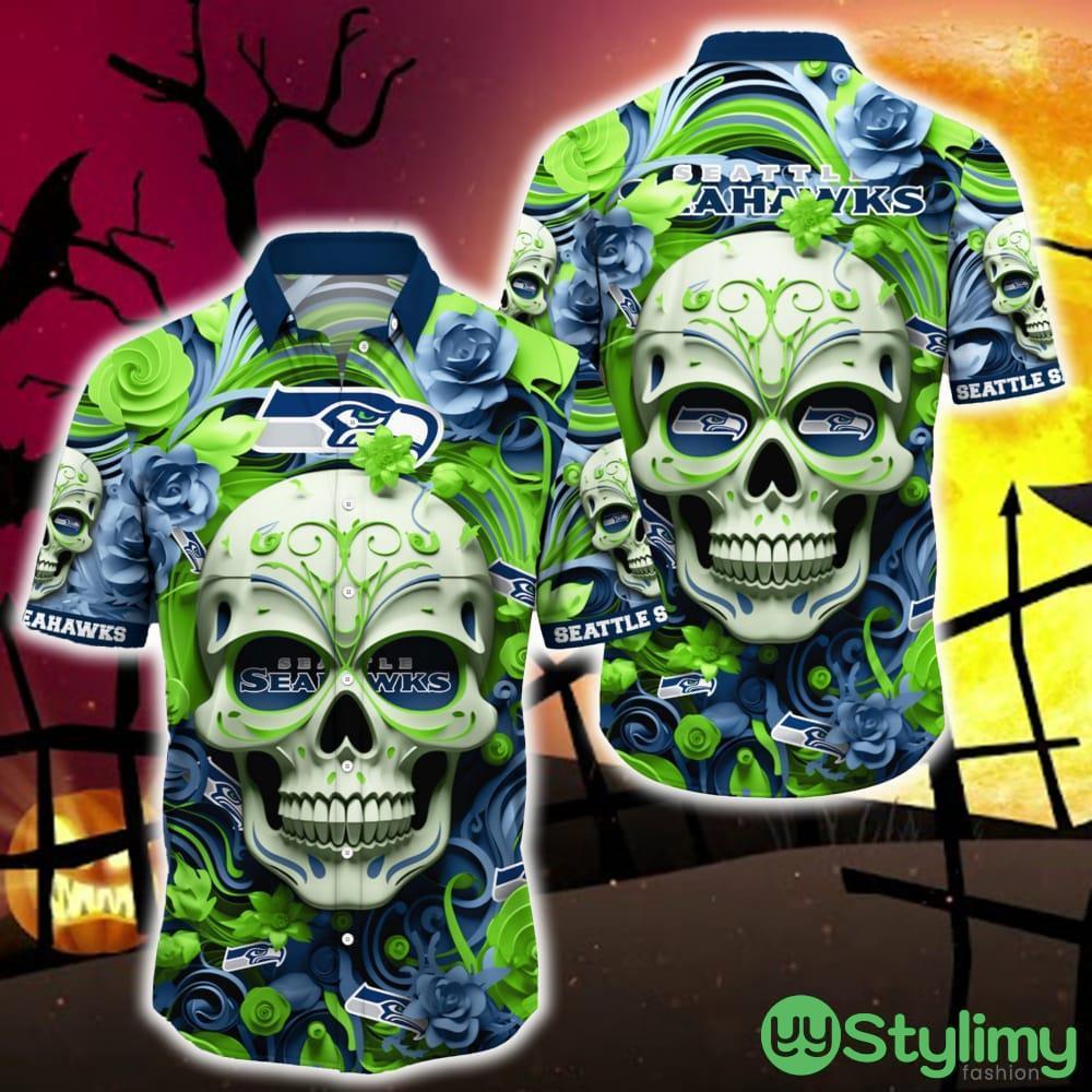 Seattle Seahawks Halloween Skull 3D Hawaiian Shirt For Fans Gift Christmas Men And Women