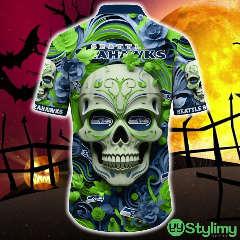 Seattle Seahawks Halloween Skull 3D Hawaiian Shirt For Fans Gift Christmas Men And Women Details: