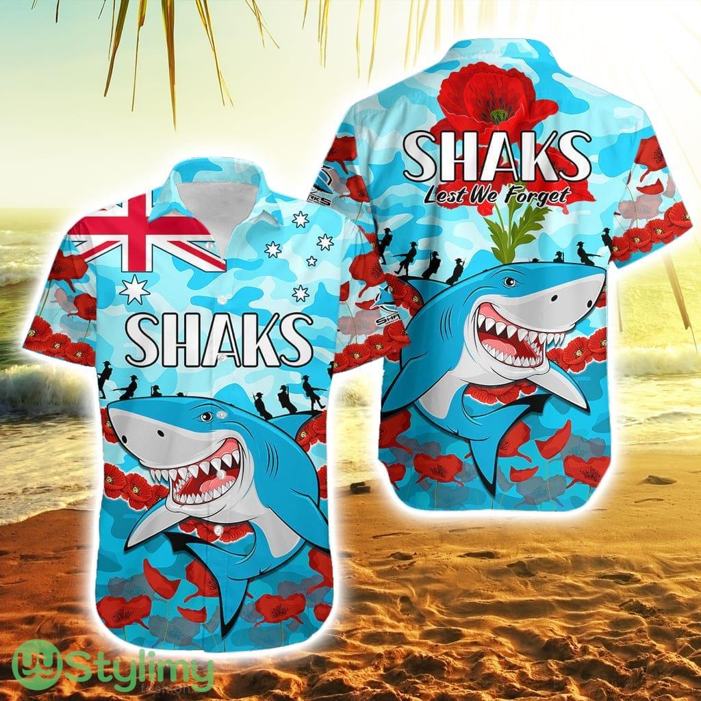 Sharks Rugby Anzac Striped Hawaiian Shirt Lest We Forget Product Photo 1