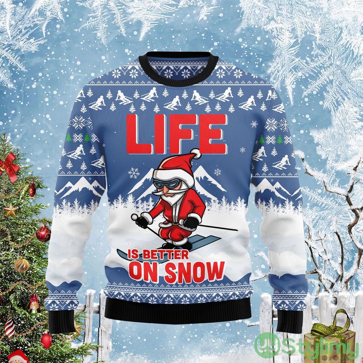 Skiing Life Is Better On Snow Funny Santa Ugly Christmas Sweater Product Photo 1