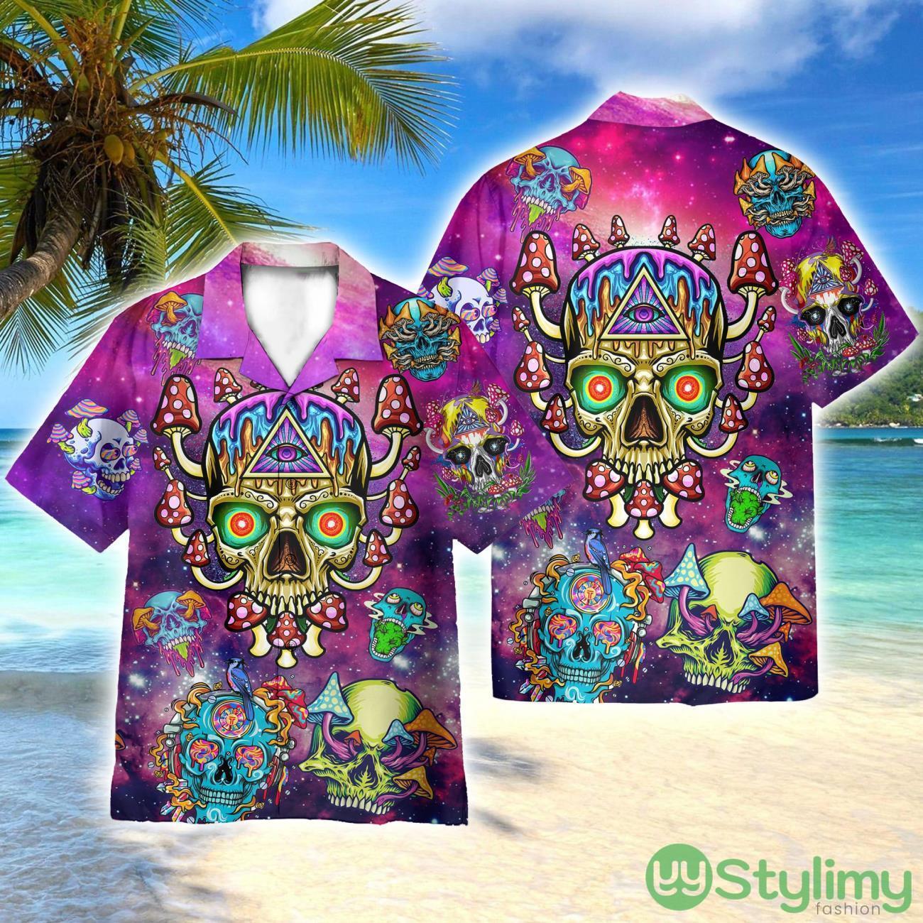 Skull Mushroom Hippie 3D Printed Beach Shirt Men Women Hawaiian Shirt Details: