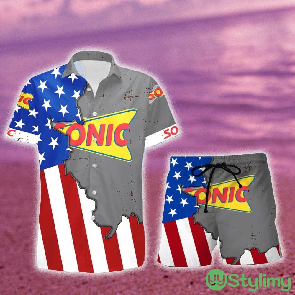 Sonic Drive-In USA Flag Aloha Summer Beach Hawaiian Combo Shirt And Short Gift Hawaiian For Mens Details:
