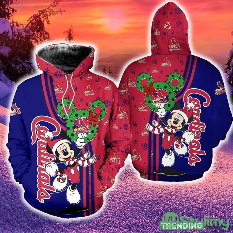 Perfect design for holiday. Get yours this shirt or this is a cute item for your daddy, gift for your mom, and gift for friends on any occasion. buy a cute St. Louis Cardinals Christmas Disney Mickey Funny 3D Hoodie Zip Hoodie Red Print Holiday Gift For Fans now.