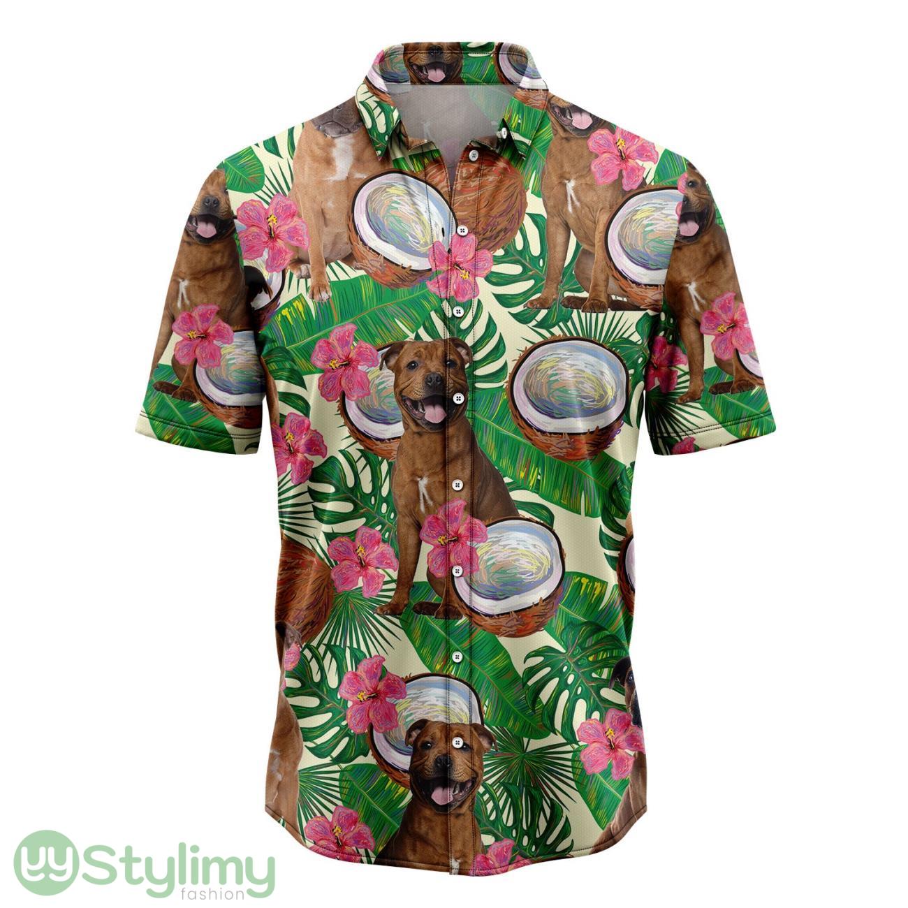 Staffordshire Bull Terrier Tropical Coconut Hawaiian Shirt 3D Printed Cute Summer Gift For Mne ANd Women Details: