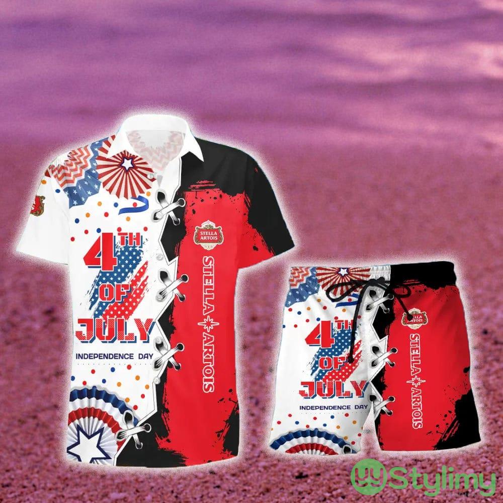 Stella Artois USA Flag Independence 4th of July Hawaiian Combo Shirt And Short Gift Hawaiian For Mens Details: