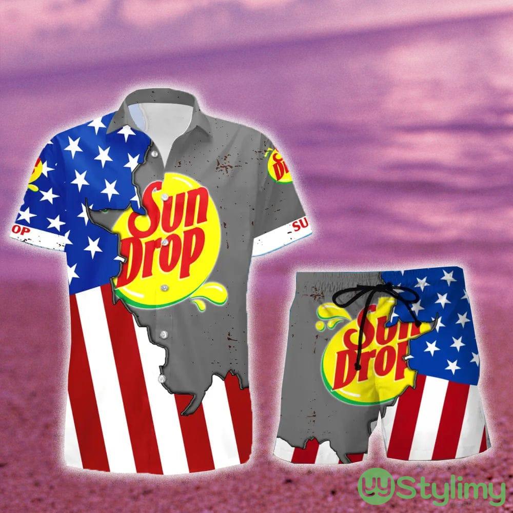 Sun Drop USA Flag Aloha Summer Beach Hawaiian Combo Shirt And Short Gift Hawaiian For Mens Details: