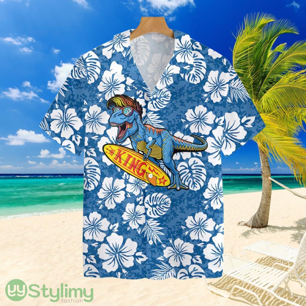 T-Rex Catch The Waves Dinosaur Tropical Hawaiian Shirt For Men And Women Details: