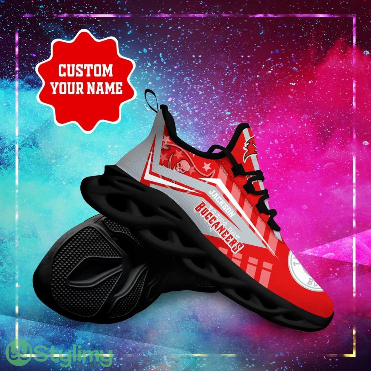Step up your sneaker game with the Tampa Bay Buccaneers NFL Max Soul Shoes Custom Name Sneakers! Show off your team pride in style with these hot trending running sneakers. Made for ultimate comfort and support, these shoes are perfect for game day or everyday wear. Personalize them with your own custom name for a unique touch. Don’t miss out on this must-have accessory for any Buccaneers fan. Order yours now and step out in style!