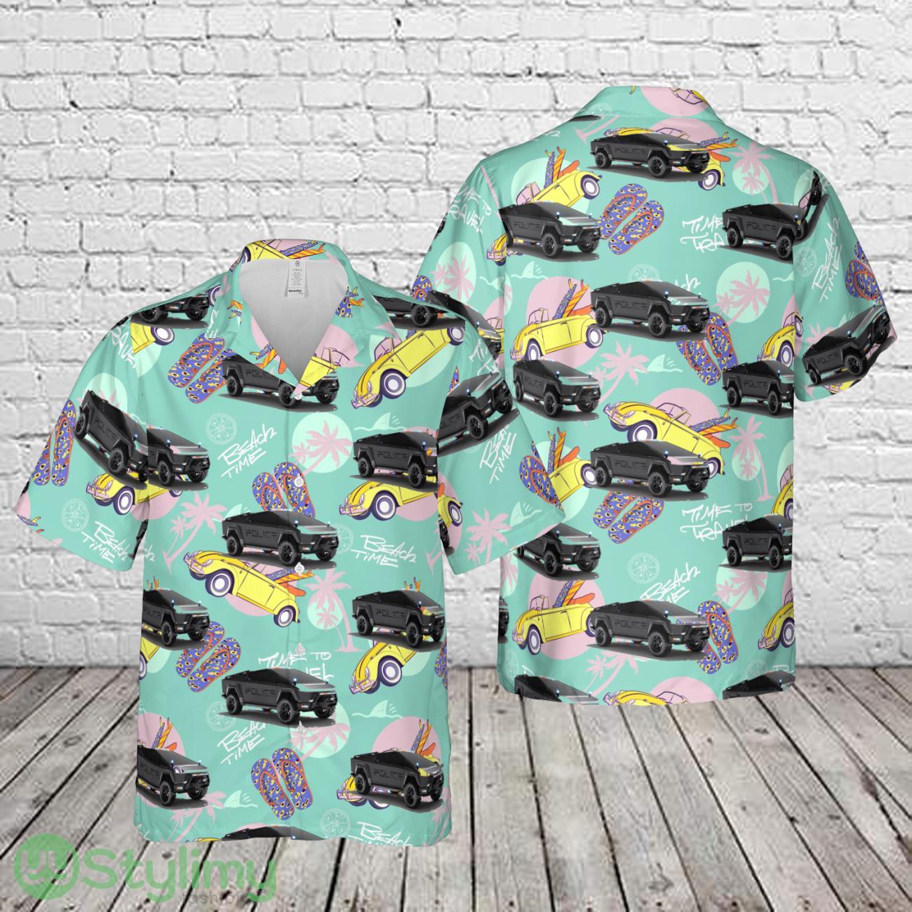 Tesla Cybertruck Police 3D Hawaiian Shirt Summer Trending Beach Gift Details: