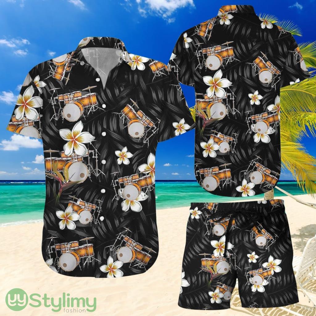 Topeka Style Drums Tropical Flowers Men Hawaiian Shirt And Short For Instrument Lovers Product Photo 1