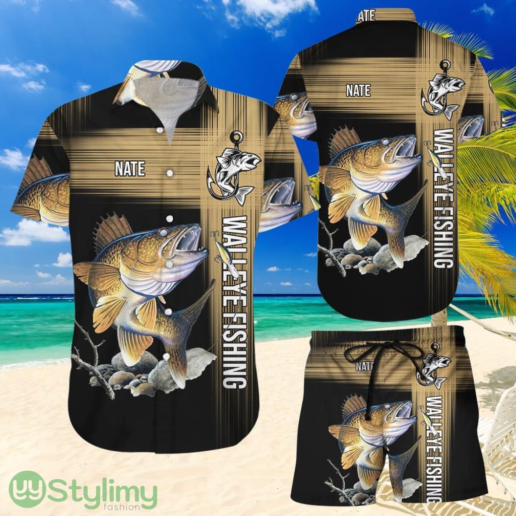 Topeka Style Fishing Hawaiian Shirt And Short – Aloha Hook Walleye Fishing Hawaii Shirts Product Photo 1