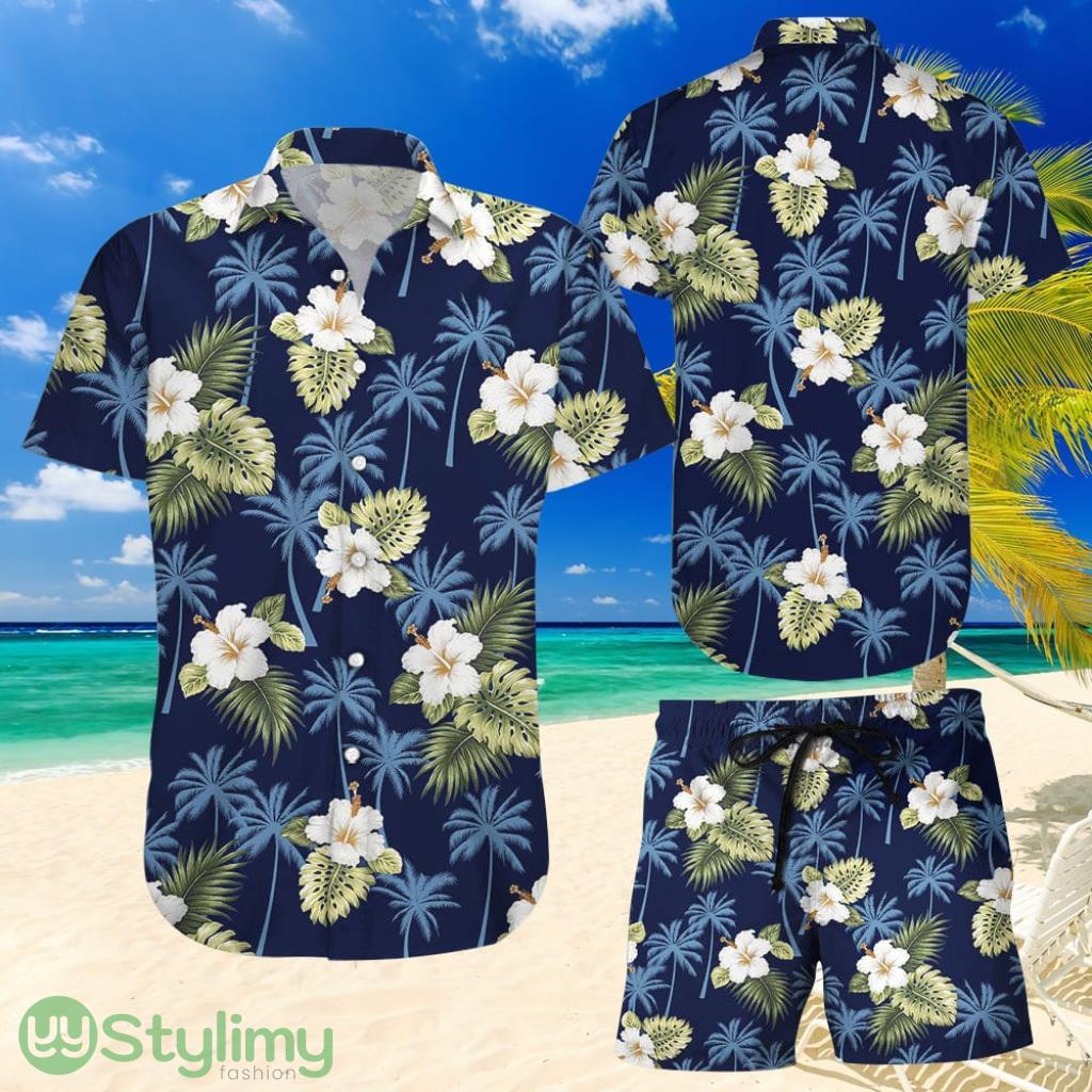 Topeka Style Flower Hawaiian Shirt And Short – White Flower With Leaves Hawaiian Shirt And Shorts – Summer Vacation Gift Ideas Product Photo 1