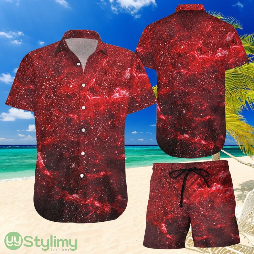 Topeka Style Galaxy Hawaiian Shirt And Short – Red Galaxy Space Print Button Down Shirt – Best Beach Gift Ideas Details: