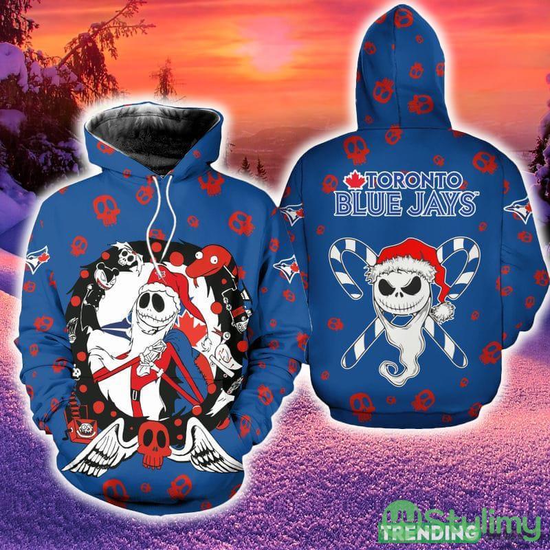 Perfect design for holiday. Get yours this shirt or this is a cute item for your daddy, gift for your mom, and gift for friends on any occasion. buy a cute Toronto Blue Jays Christmas Jack Skellington 3D Hoodie Zip Hoodie Blue Print Holiday Gift For Fans now.