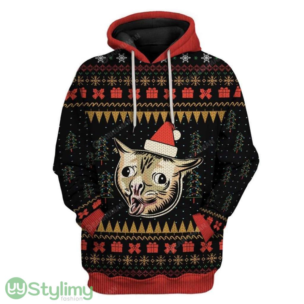 Ugly Christmas Coughing Cat Meme Hoodie 3D Alll Over Print Gift For Christmas Product Photo 1