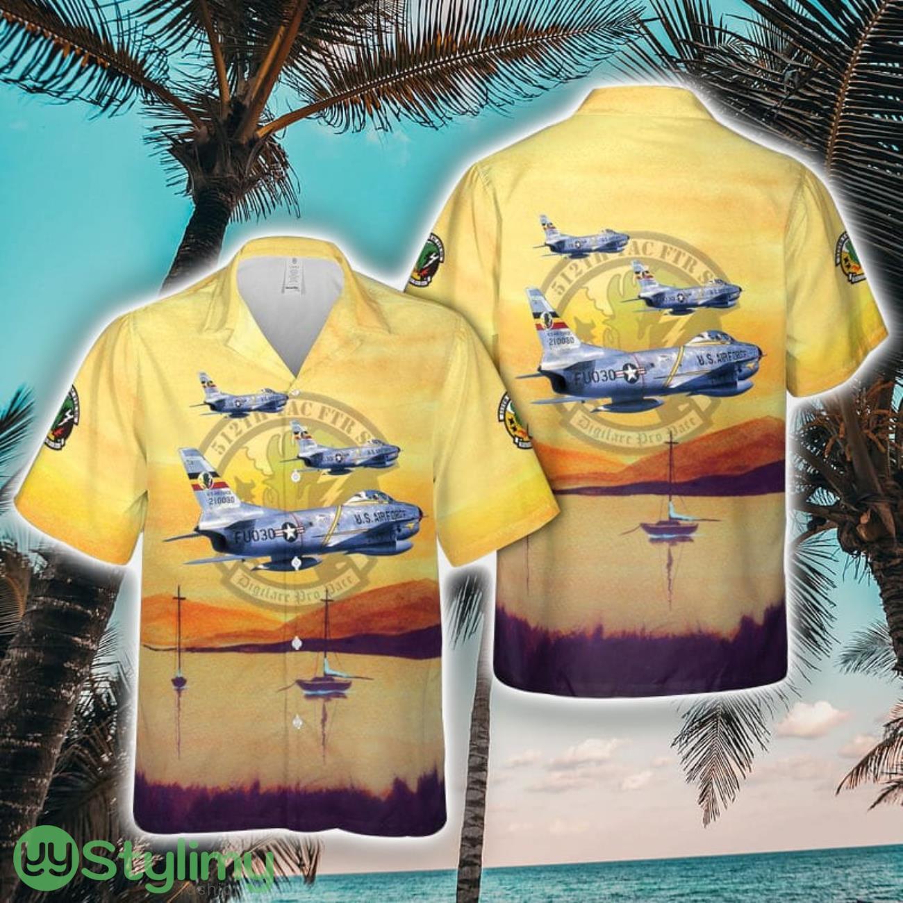 US Air Force 512th Fighter Squadron F-86D Sabre Tropical 3D Hawaiian Shirt Summer Gift Details: