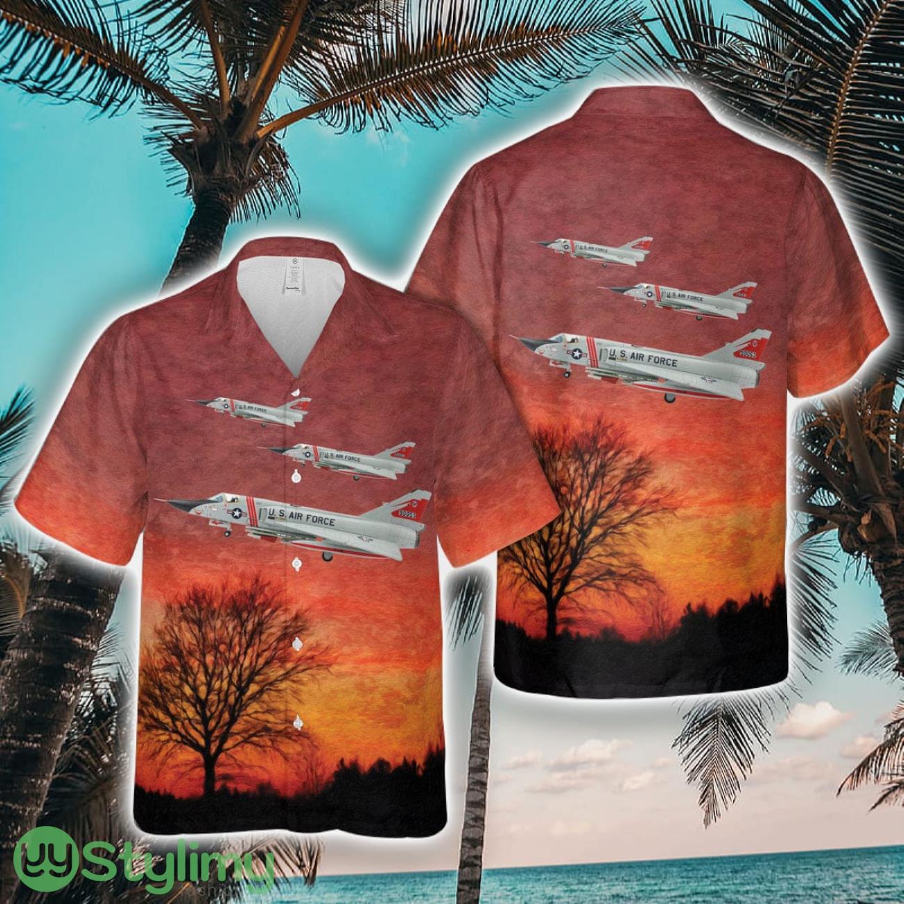 US Air Force 87th FIS Red Bulls Convair F-106A Delta Dart Tropical 3D Hawaiian Shirt Summer Gift Details: