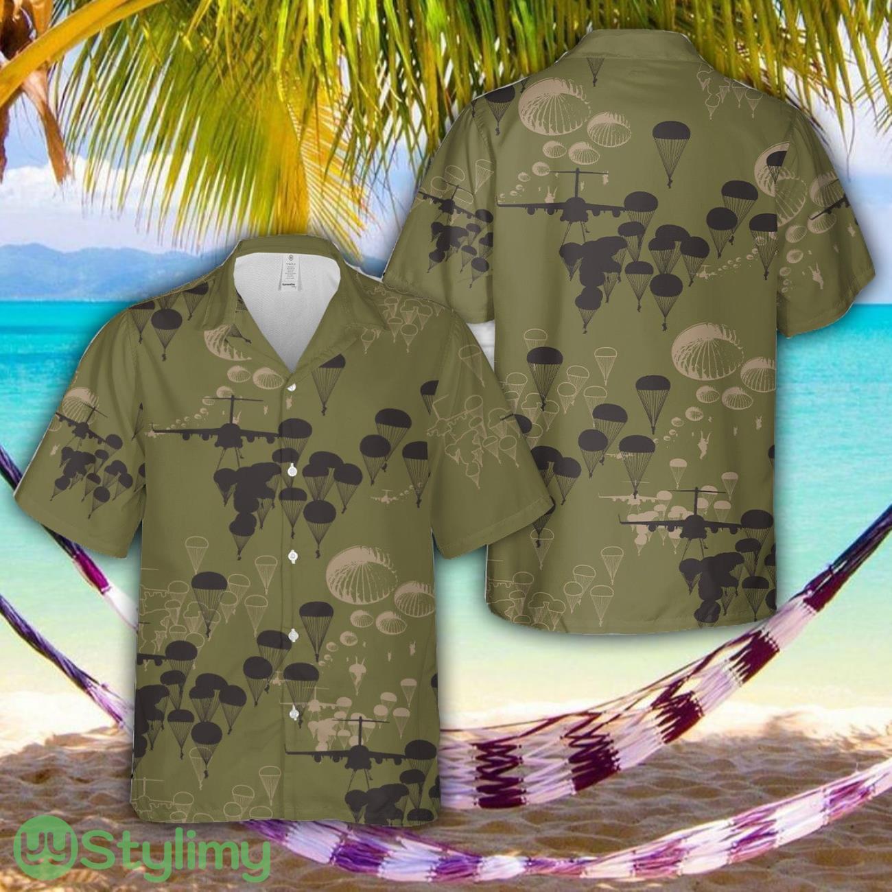 US Army Paratroopers With The 82nd Airborne Division Parachute Silhouettes Hawaiian Shirt Aloha Summer Vacation Gift Details:
