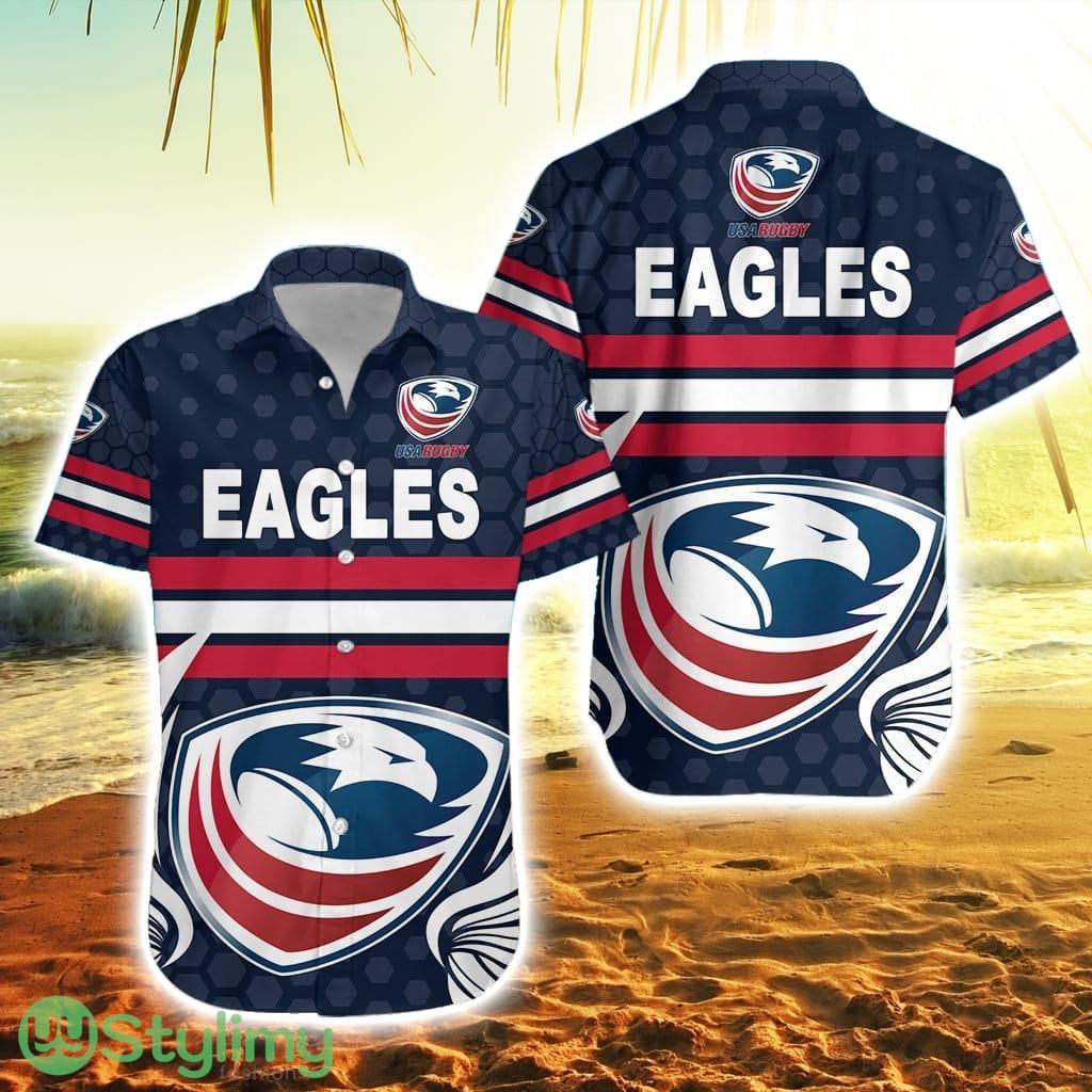Usa Rugby Striped Hawaiian Shirt Eagles Simple Style Full Navy Details:
