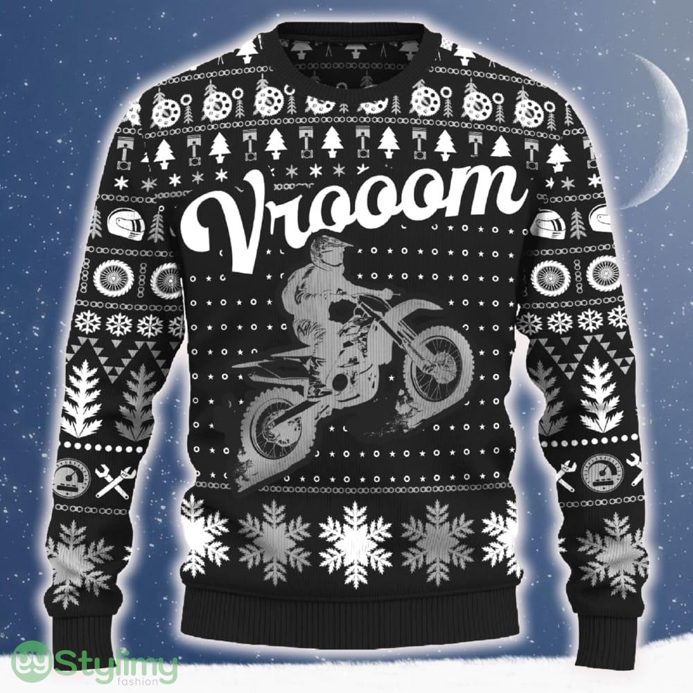 Get ready to rev up your style this holiday season with the Vrooom CRF250R Christmas Tree AOP Sweater Motorcross Special Gift For Men And Women.