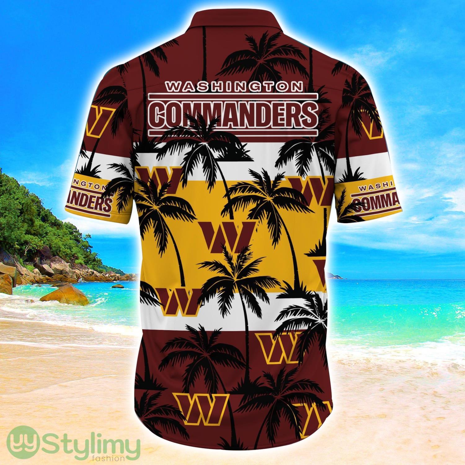 Featuring a tasteful blend of tropical palm trees and the iconic Washington Commanders logo, this shirt effortlessly combines island vibes with team spirit. The eye-catching design is sure to make you the center of attention at any summer event or beach party.