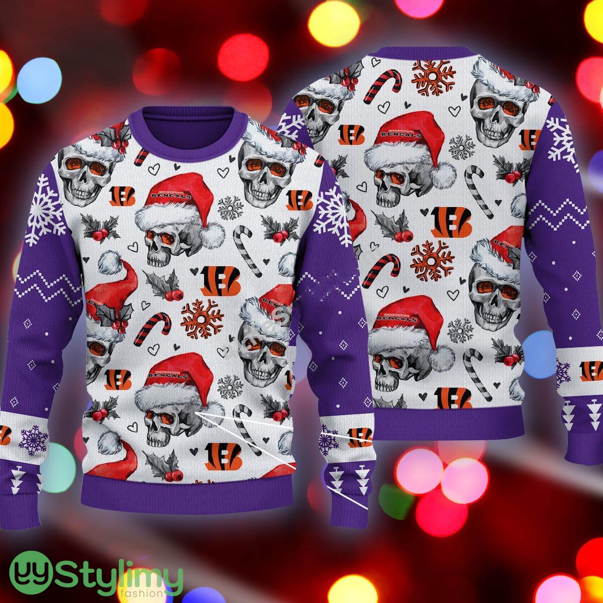 Some of the Xmas Cincinnati Bengals Skull Candy Cane Purple Knitted Sweater AOP photos